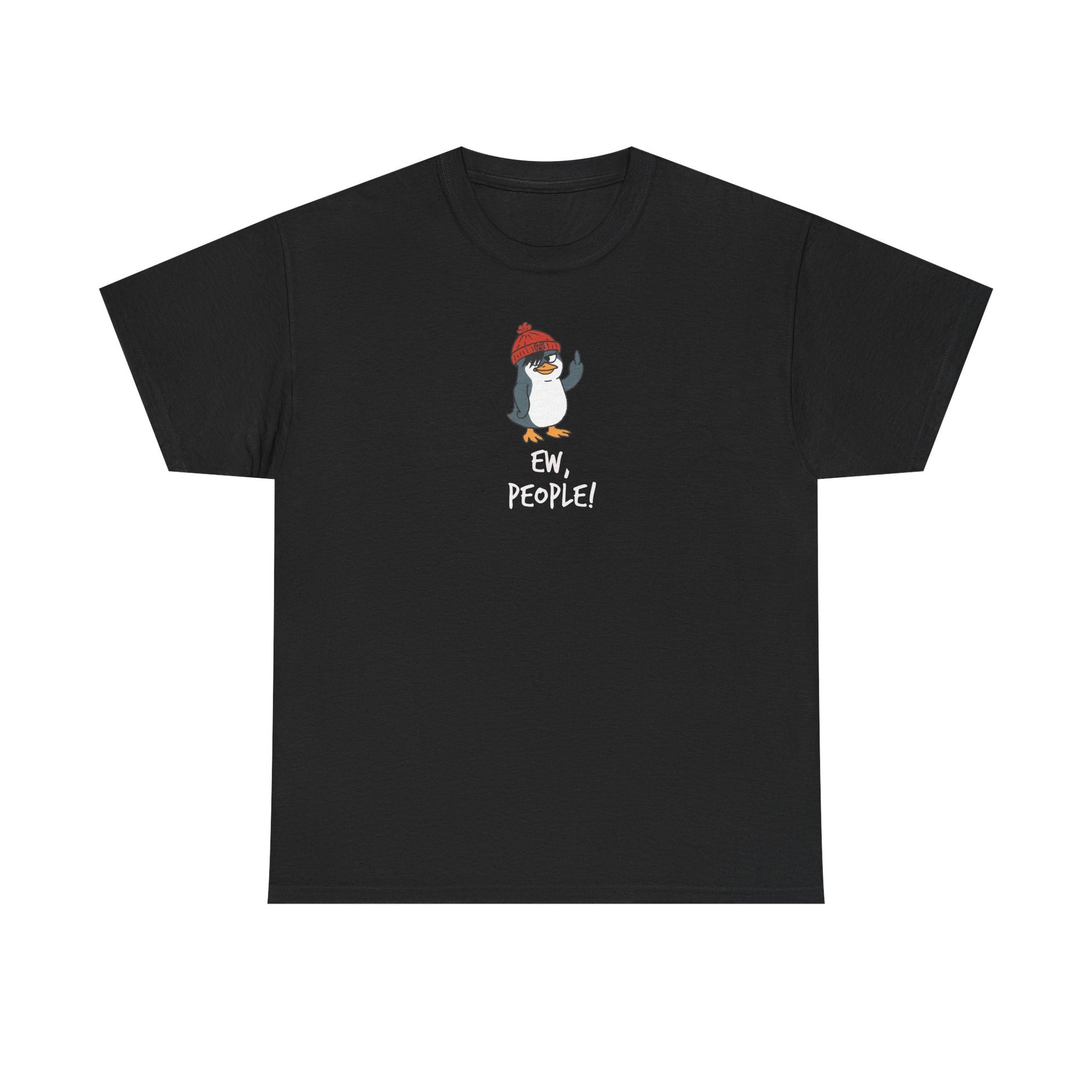 A soft, everyday tee that quietly screams ‘introvert energy’ with the tiny, grumpy apenguin illustration and the cheeky line “Ew, people!” centered on the chest. The medium-weight cotton feels sturdy without being stiff, so it wears well solo in warmer months or layered under a jacket when you want to keep a low profile. The crew neckline and classic relaxed fit give it a comfortable silhouette that slips into casual routines—coffee runs, couch mornings, or socially-distanced strolls—while the understated graphic does the talking for you.